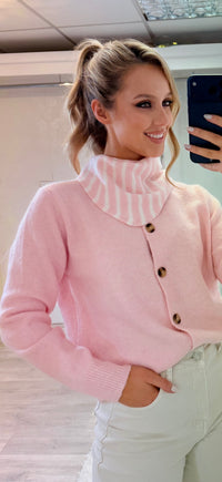 Beautiful pink fluffy knit with stripe scarf