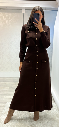 Gorgeous chocolate brown knit cardigan and matching skirt set