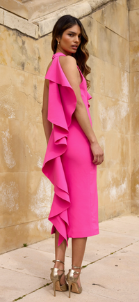 Magenta frill midi dress with pearl back button
